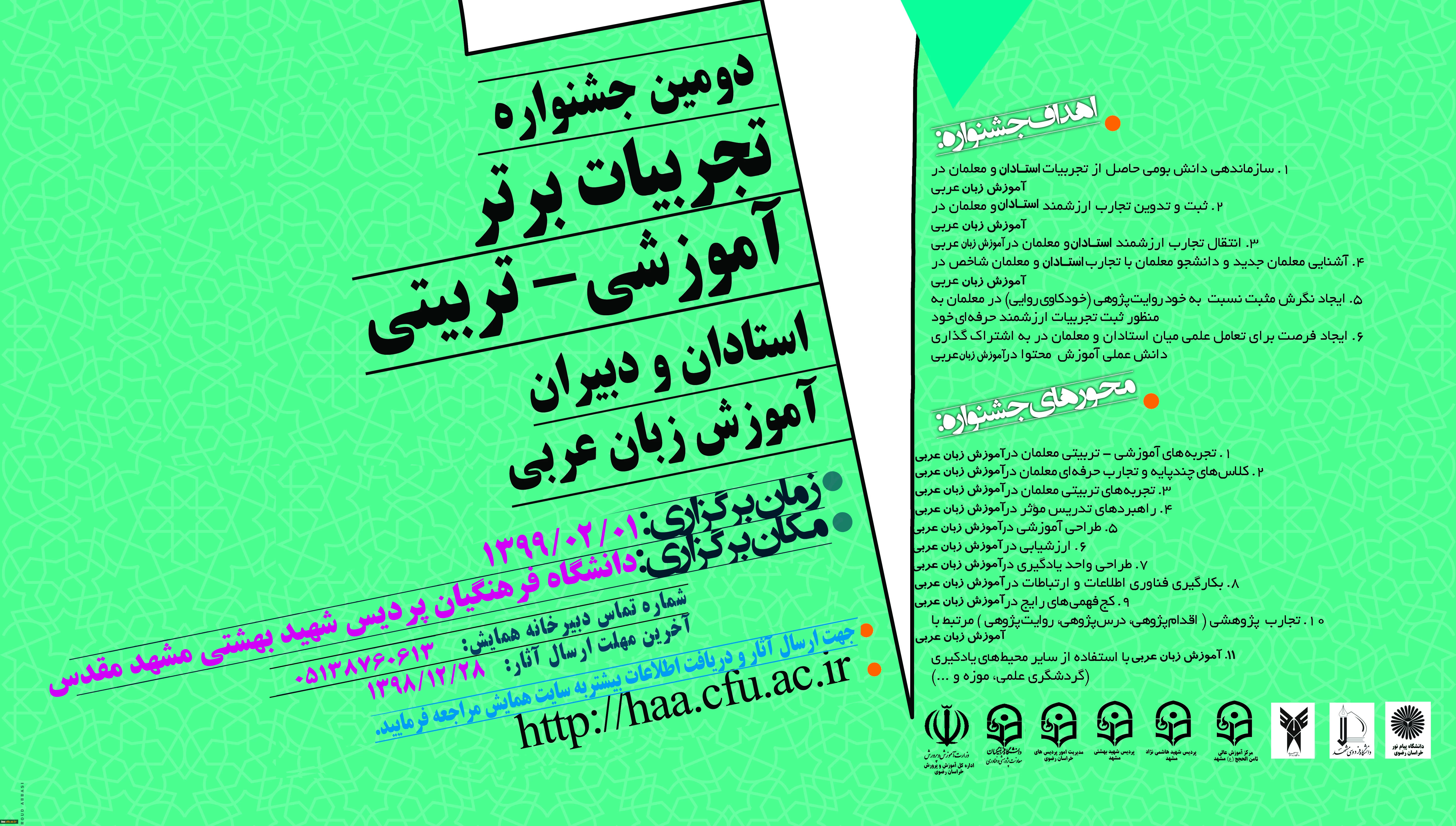 امتیاز دهید : جشنواره کشوری تجربیات برتر آموزش زبان عربی دانشگاه فرهنگیان استان خراسان رضوی 2 دوشنبه 21 بهمن 1398 ساعت 11:47