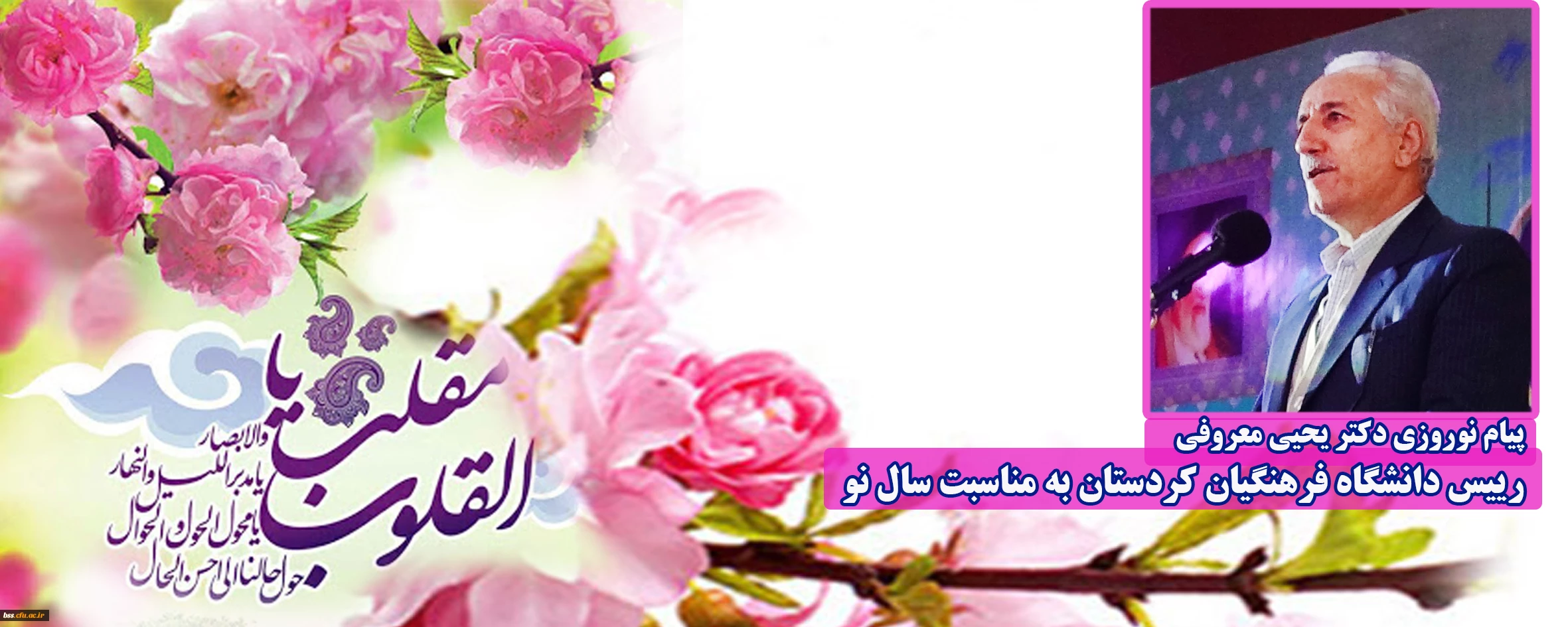 امتیاز دهید : پیام نوروزی دکتر یحیی معروفی رییس دانشگاه فرهنگیان کردستان به مناسبت سال نو 2 سهشنبه 27 اسفند 1398 ساعت 13:16
