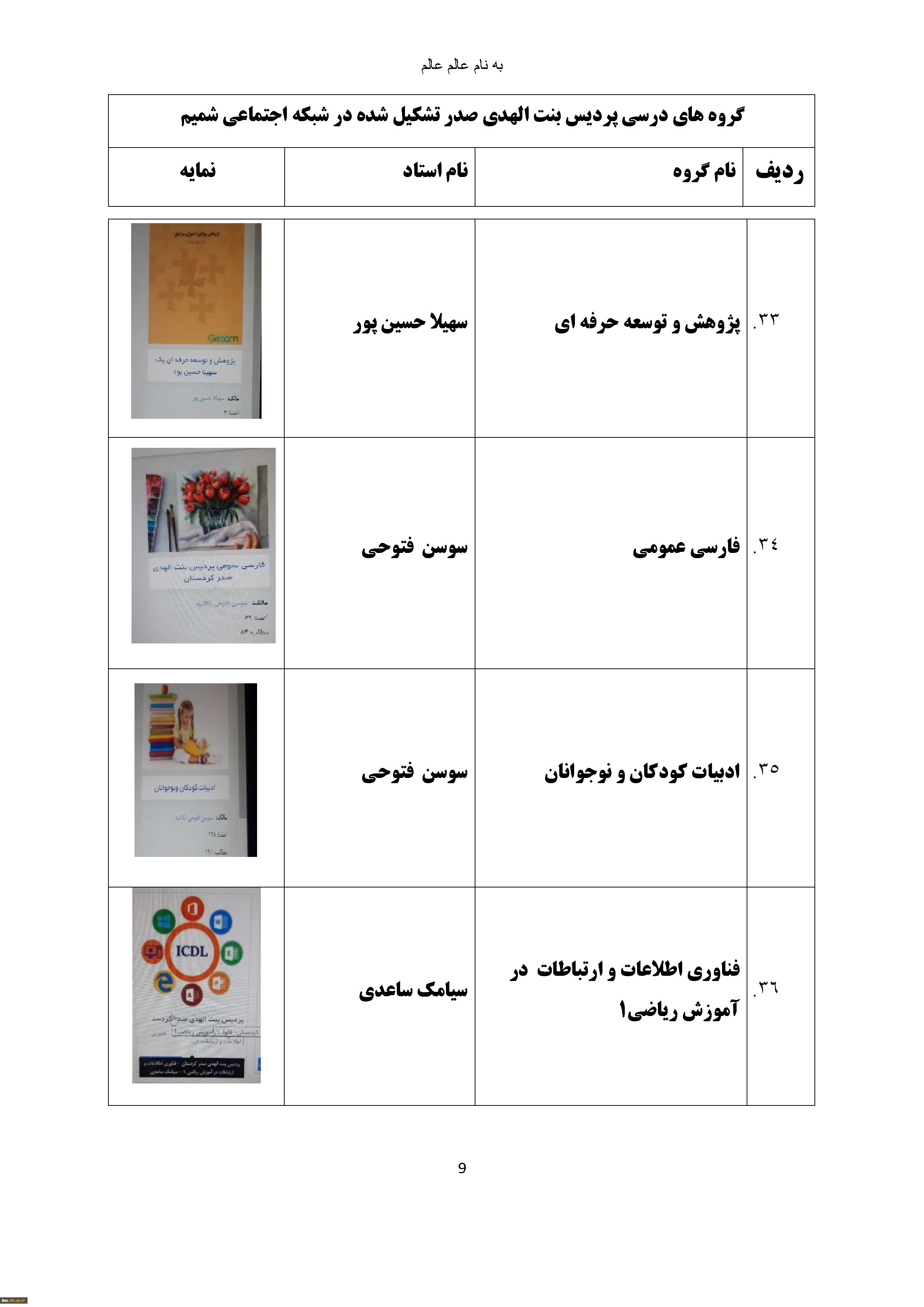 امتیاز دهید : گروه های درسی که در شبکه اجتماعی شمیم تشکیل شده اند 11 یکشنبه 31 فروردین 1399 ساعت 7:01