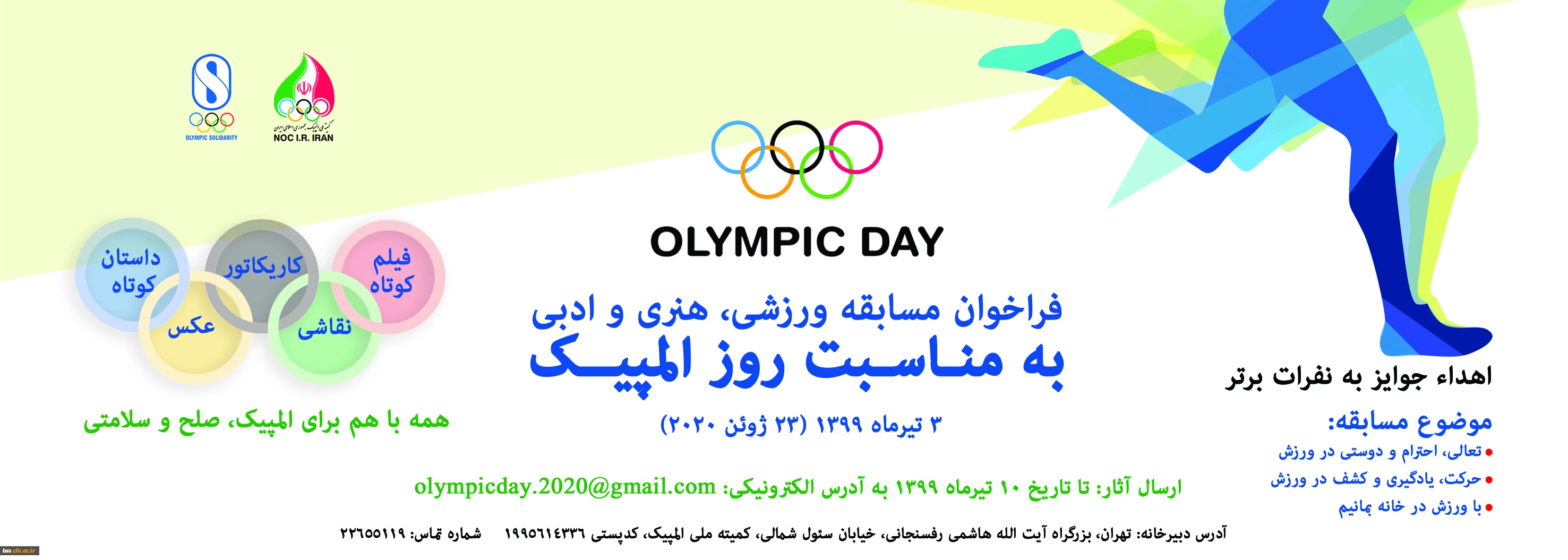 امتیاز دهید : برگزاری مسابقه ورزشی ، هنری و ادبی کمیته ملی المپیک ج.ا.ا 2 جمعه 30 خرداد 1399 ساعت 21:05