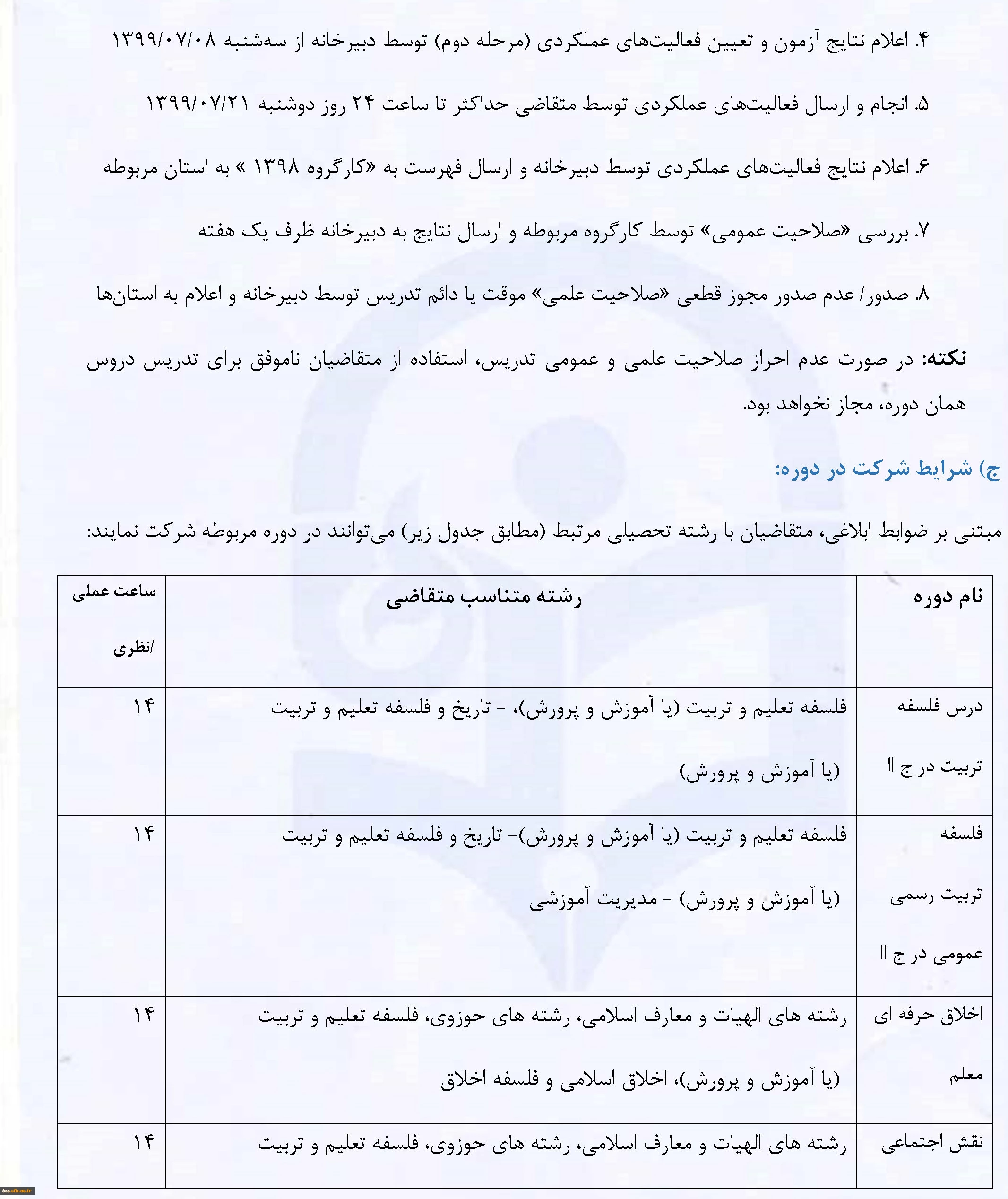 شیوه نامه اجرایی آیین نامه آموزشی دوره های کاردانی، کارشناسی پیوسته و ناپیوسته دانشگاه فرهنگیان