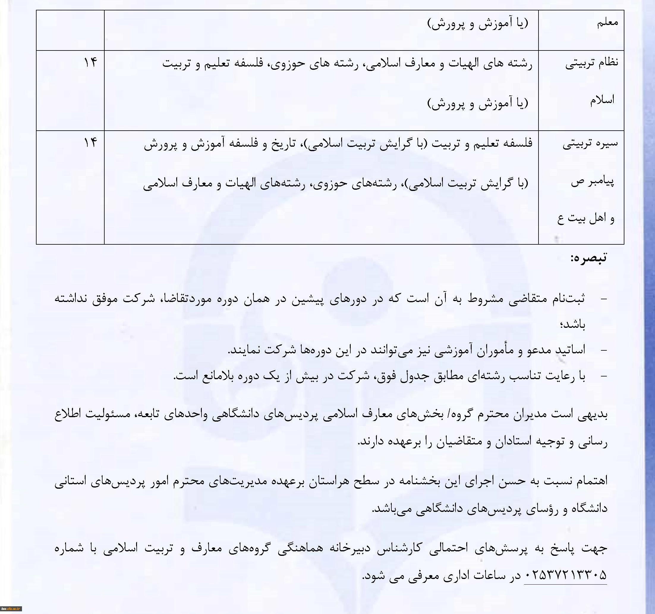 شیوه نامه اجرایی آیین نامه آموزشی دوره های کاردانی، کارشناسی پیوسته و ناپیوسته دانشگاه فرهنگیان