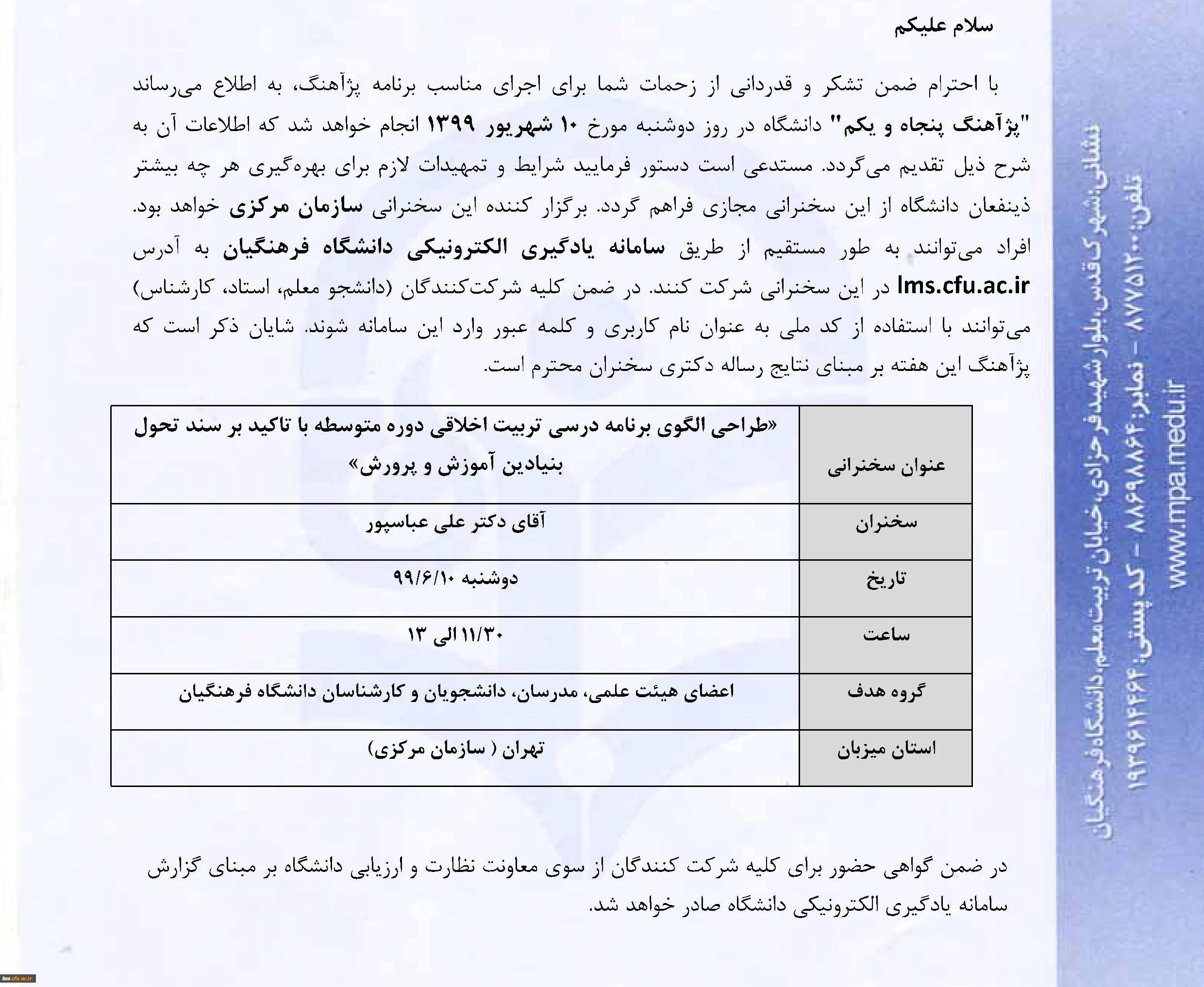 منشور فرهنگی ، اجتماعی دانشگاه فرهنگیان