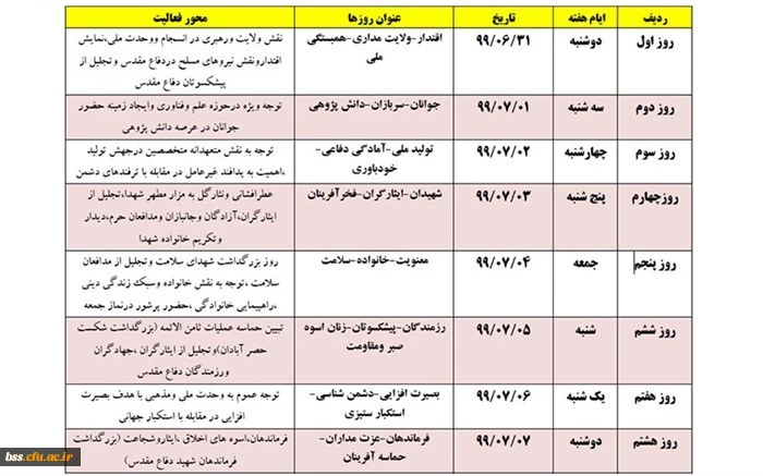 جدول برنامه درسی رشنه های کارشناسی پیوسته